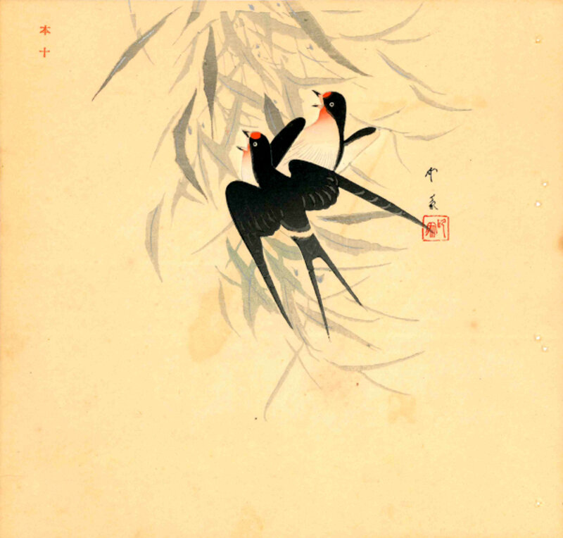 Insho DOMOTO (Giappone, 1891-1975) COPPIA DI RONDINI SU UN RAMO DI SALICE
