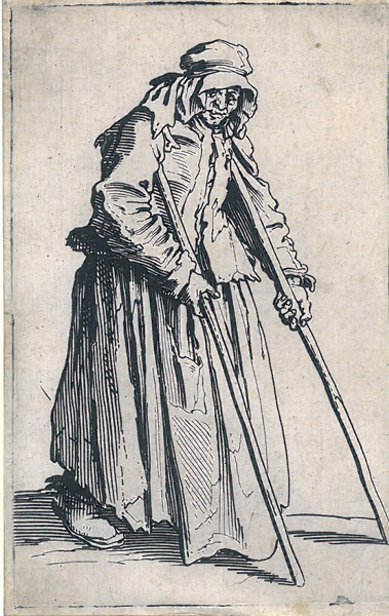 Jacques CALLOT (Lorena, 1592 - 1635) LA MENDIANTE AUX BEQUILLES