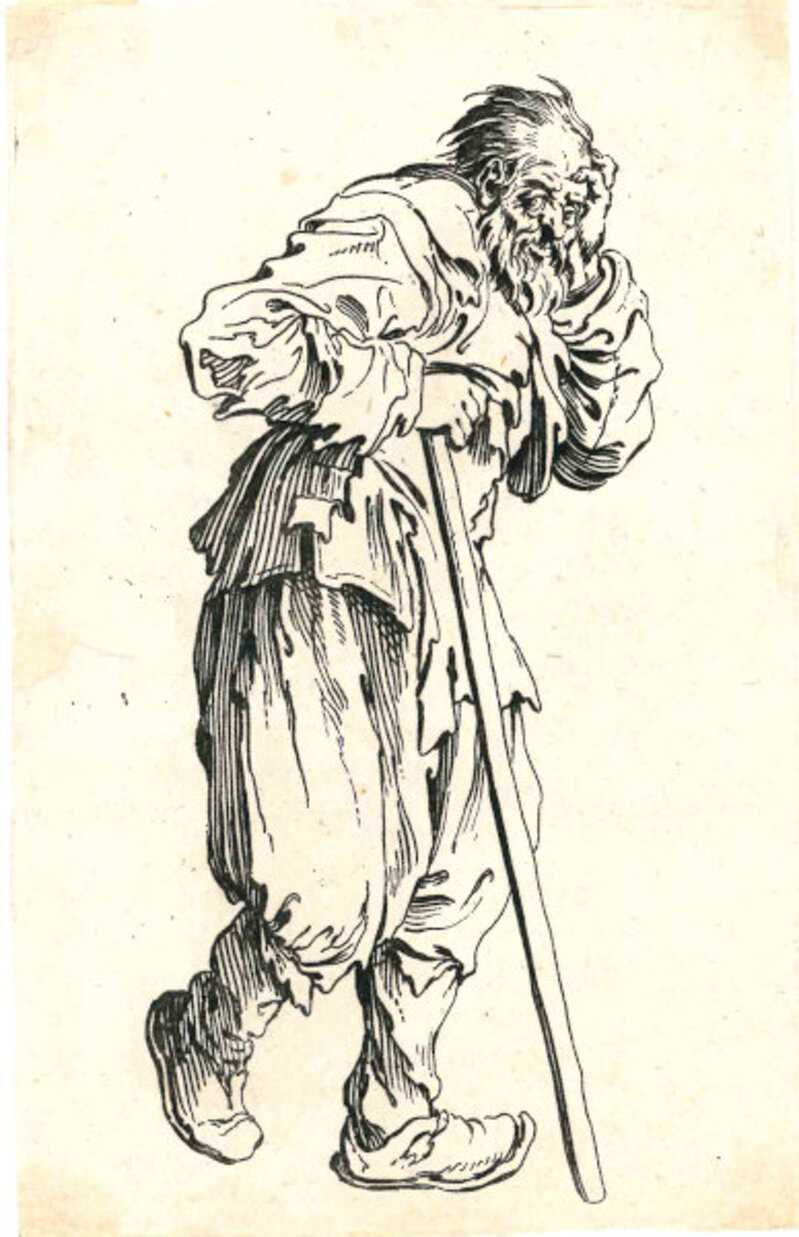 Jacques CALLOT (Lorena, 1592 - 1635) LE GUEUX APPUYE' SUR SON BATON