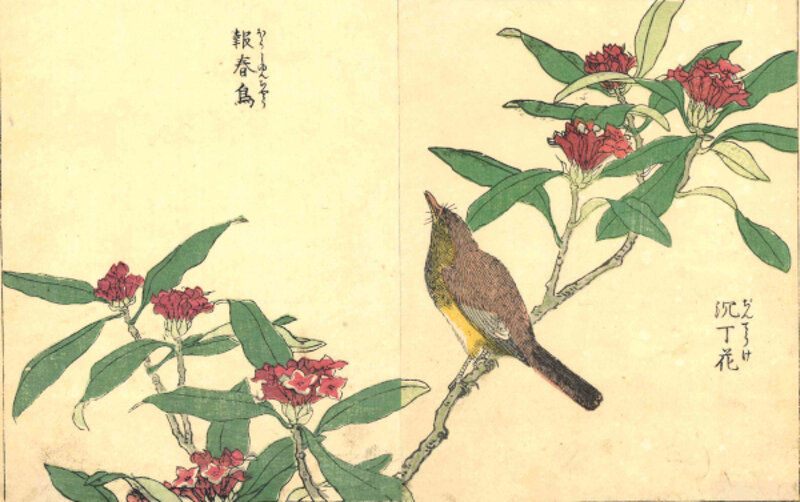 dittico della serie SHASHIN KACHO ZUE - ASPETTO REALISTICO DIFIORI E UCCELLI (1805)