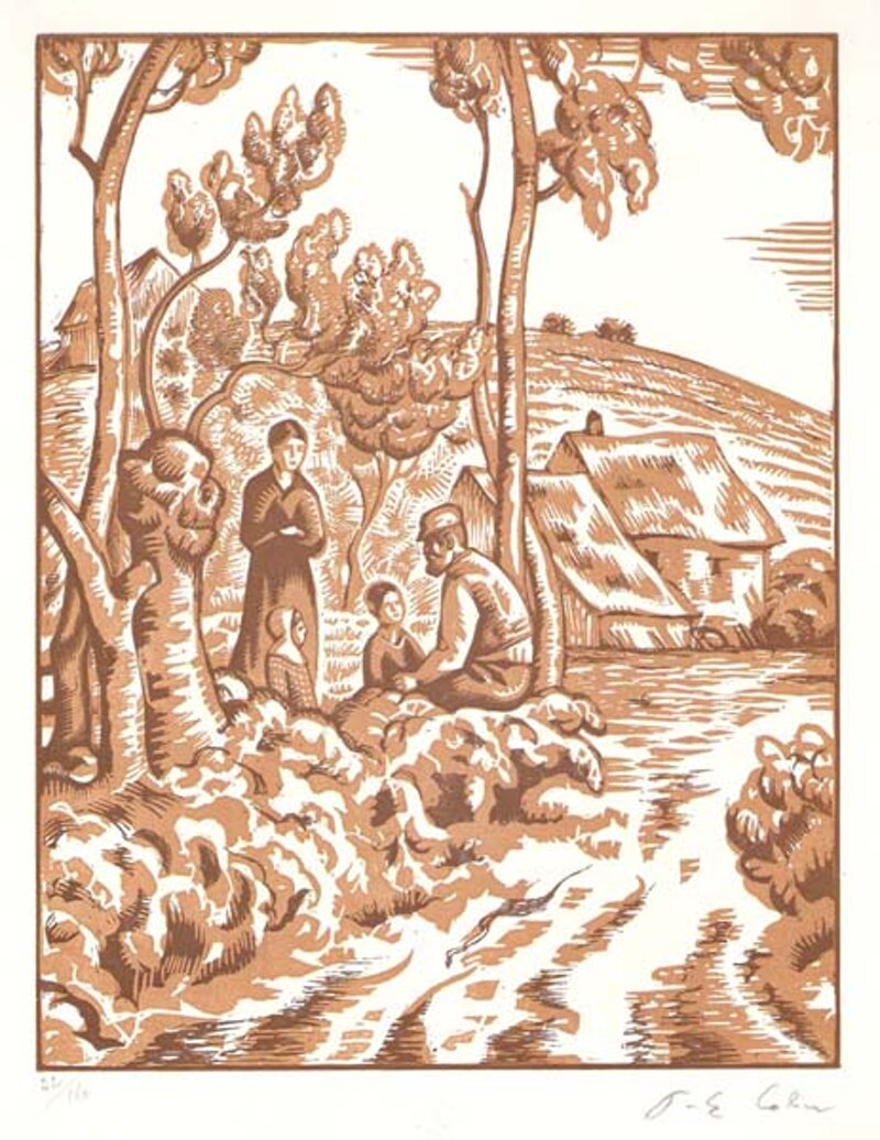 Paesaggio, xilografia, famiglia