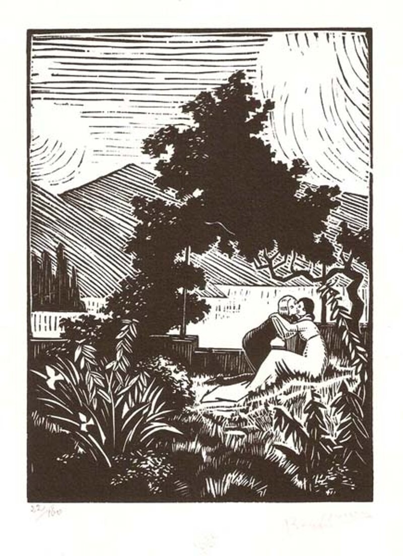 Paesaggio, xilografia, Amore, innamorati
